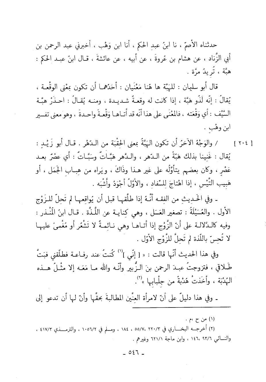 حَدَّثَنَاهُ الأصَمُّ نا ابْنُ عَبْدِ الْحَكَمِ أنا ابْنُ وَهْبٍ أَخْبَرَنِي عَبْدُ الرَّحْمَنِ بْنُ أَبِي الزِّنَادِ عَنْ هِشَامِ بْنِ عُرْوَةَ عَنْ أَبِيهِ عَنْ عَائِشَةَ قَالَ ابْنُ عَبْدِ الْحَكَمِ هَبَّةٌ تُرِيدُ مَرَّةً.