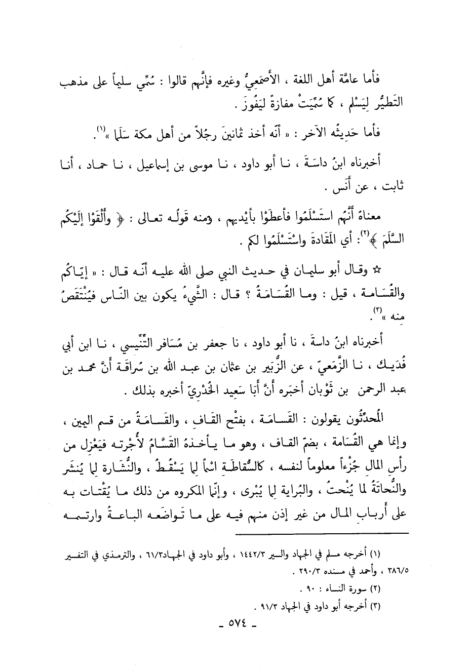 وَقَالَ أَبُو سُلَيْمَانَ فِي حَدِيثِ النَّبِيِّ صَلَّى اللَّهُ عَلَيْهِ وَسَلَّمَ أَنَّهُ قَالَ: "إِيَّاكُمْ وَالْقُسَامَةَ" قِيلَ وَمَا الْقُسَامَةُ قَالَ: "الشَّيْءُ يَكُونُ بَيْنَ النَّاسِ فَيُنْتَقَصُ مِنْهُ" 1.