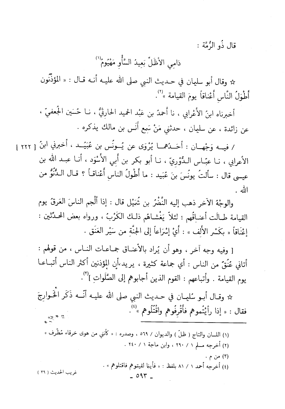 وَقَالَ أَبُو سُلَيْمَانَ فِي حَدِيثِ النَّبِيِّ صَلَّى اللَّهُ عَلَيْهِ وَسَلَّمَ أَنَّهُ قَالَ: "الْمُؤَذِّنُونَ أَطْوَلُ النَّاسِ أَعْنَاقًا يَوْمَ الْقِيَامَةِ" 1.