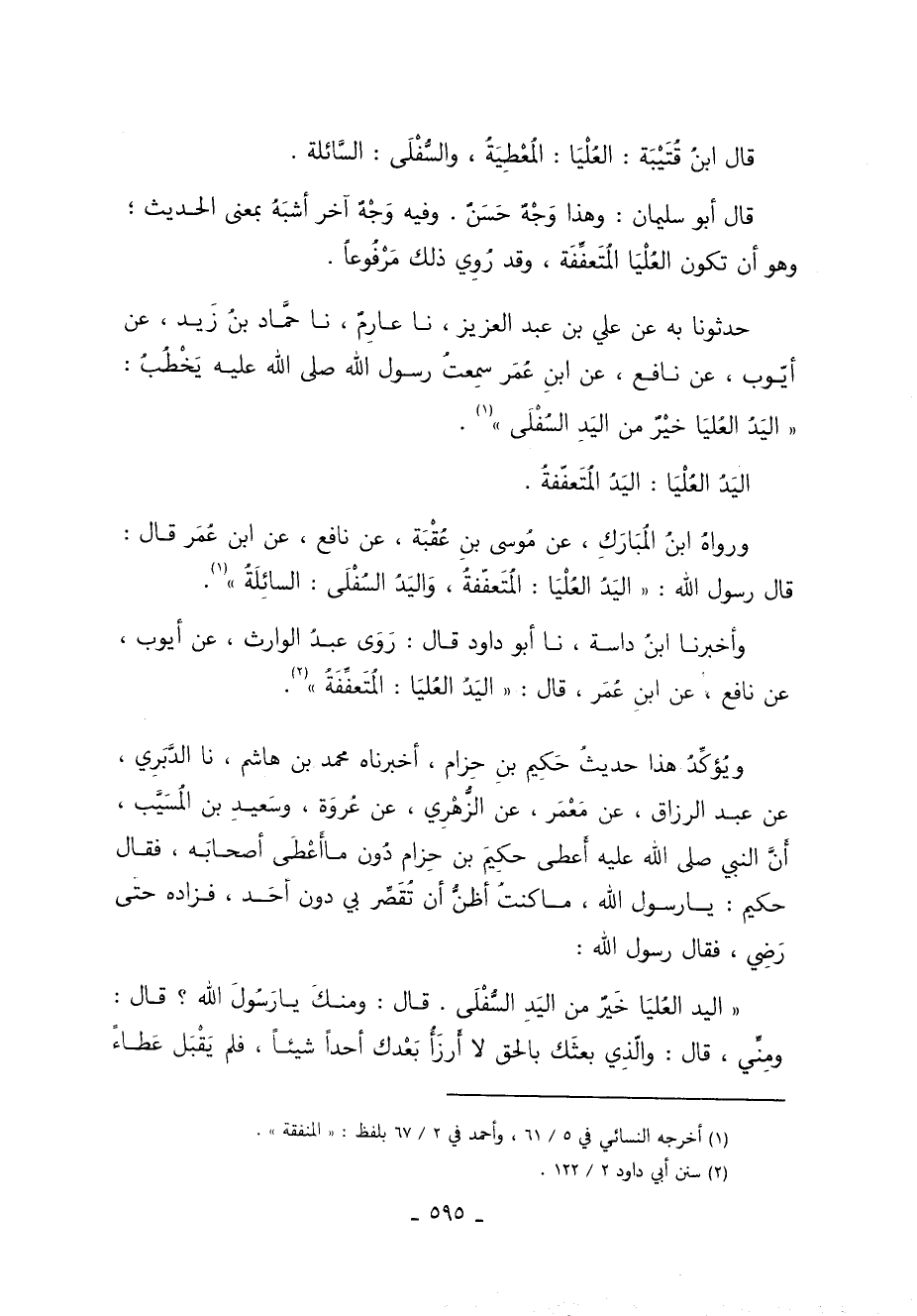 وَأَخْبَرَنَا ابْنُ دَاسَةَ نا أَبُو دَاوُدَ قَالَ رَوَى عَبْدُ الْوَارِثِ عَنْ أَيُّوبَ عَنْ نَافِعٍ عَنِ ابْنِ عُمَرَ قَالَ الْيَدُ الْعُلْيَا الْمُتَعَفِّفَةُ 2.