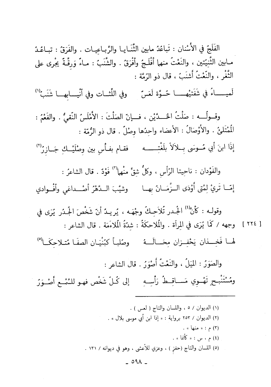 الفَلَجُ في الأَسْنان تَباعُدُ ما بين الثَّنَايا والرَّباعِيات. والفَرَقُ تباعُدُ ما بين الثَّنِيّتين والنَعْتُ منهما أفْلَجُ وأفْرَقُ والشَّنَبُ ماءٌ وَرِقَّةٌ يجْرى عَلَى الثَّغْر والنّعْتُ أَشنَبُ قَالَ ذو الرُمَّة: