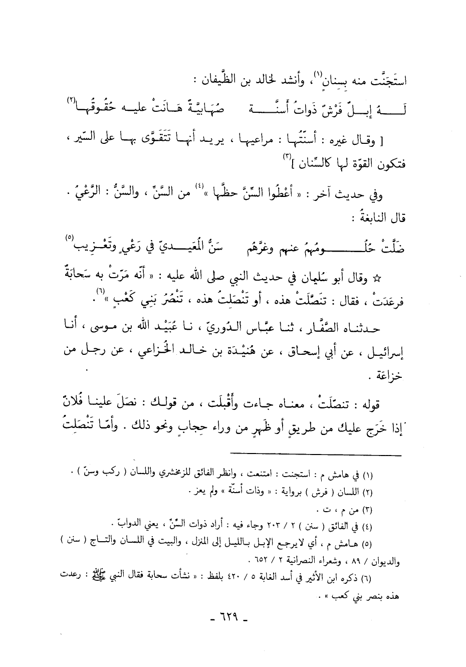 4 في الفائق "سنن" 2/ 203 وجاء فيه: أراد ذوات السن يعني الدواب.