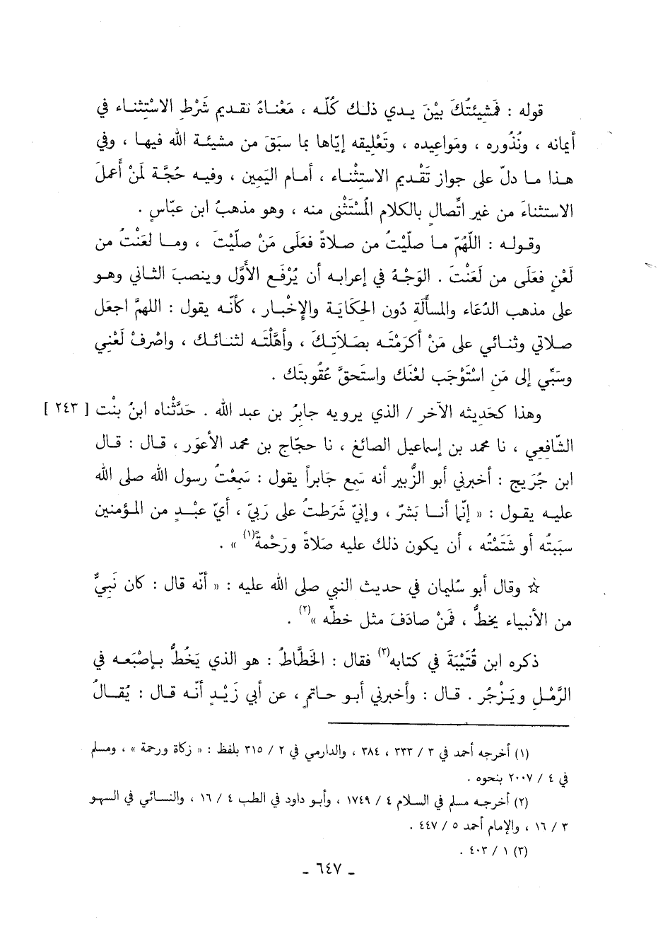 ققال أَبُو سُلَيْمَانَ فِي حَدِيثِ النَّبِيِّ صَلَّى اللَّهُ عَلَيْهِ وَسَلَّمَ أَنَّهُ قَالَ: "كَانَ نَبِيٌّ مِنَ الأنْبِيَاءِ يَخُطُّ فَمَنْ صَادَفَ مِثْلَ خَطِّهِ" 1.