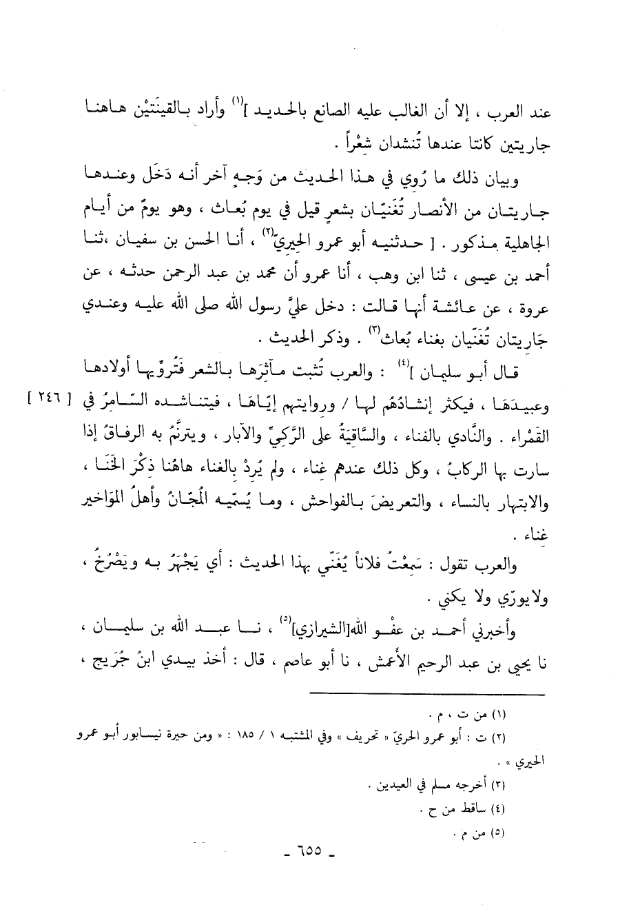 والعرب تَقُولُ سَمِعْتُ فلانًا يُغَنّي بهذا الحديث أي يَجْهَرُ بِهِ ويَصْرُخُ ولا يورّي ولا يكني. وأخبرني أحمد بْن عفْو الله الشيرازي 5 نا عَبْدُ اللَّهِ بْنُ سُلَيْمَانَ نا يحيى بْن عَبْد الرحيم الأَعمش نا أبو عاصم قَالَ أخذ بيدي ابن جريج