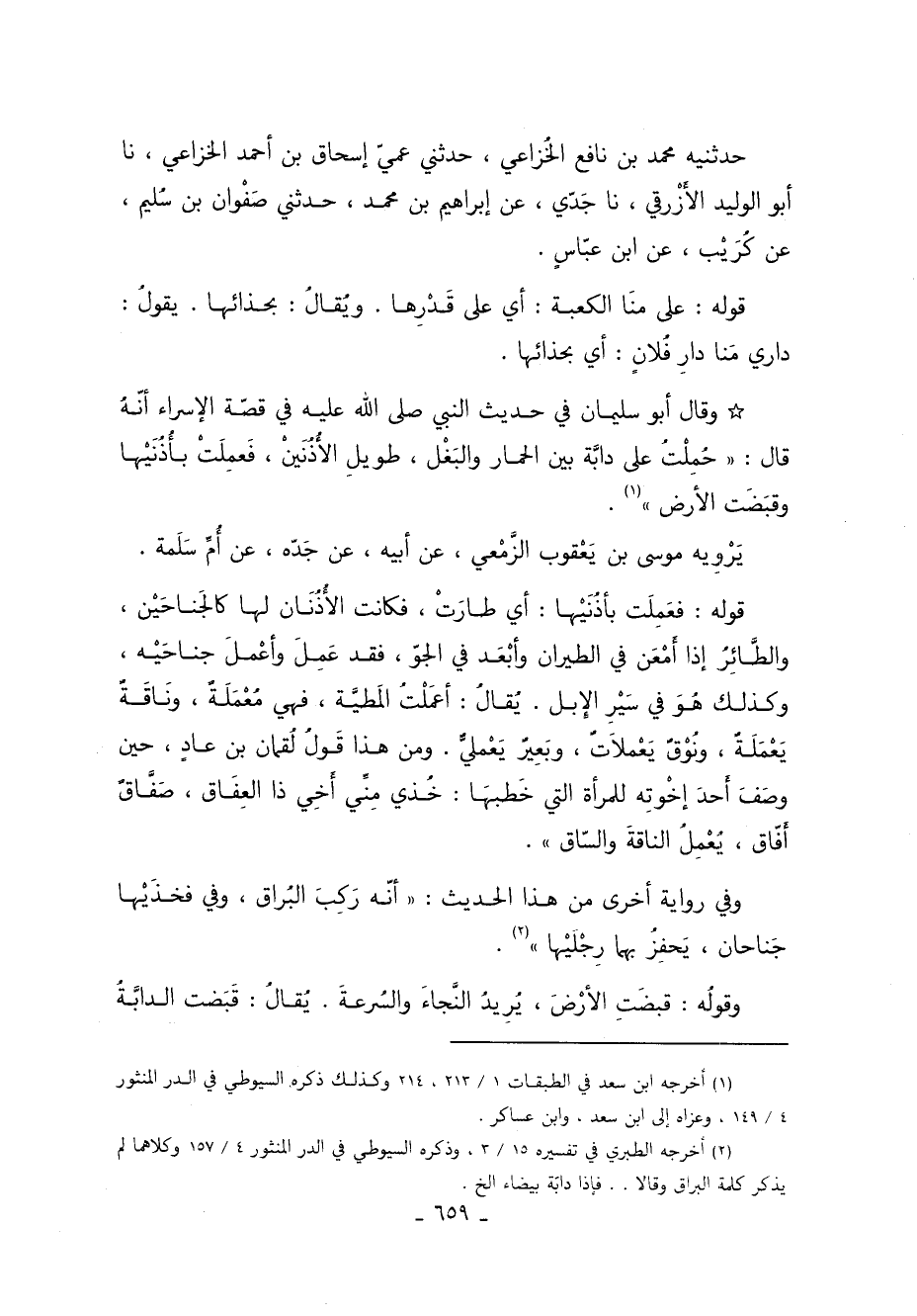 2 أخرجه الطبري في تفسيره 15/ 3 وذكره السيوطي في الدر المنثور 4/ 157 وكلاهما بم يذكركلمة البراق وقالا .. فإذا دابة بيضاء الخ.