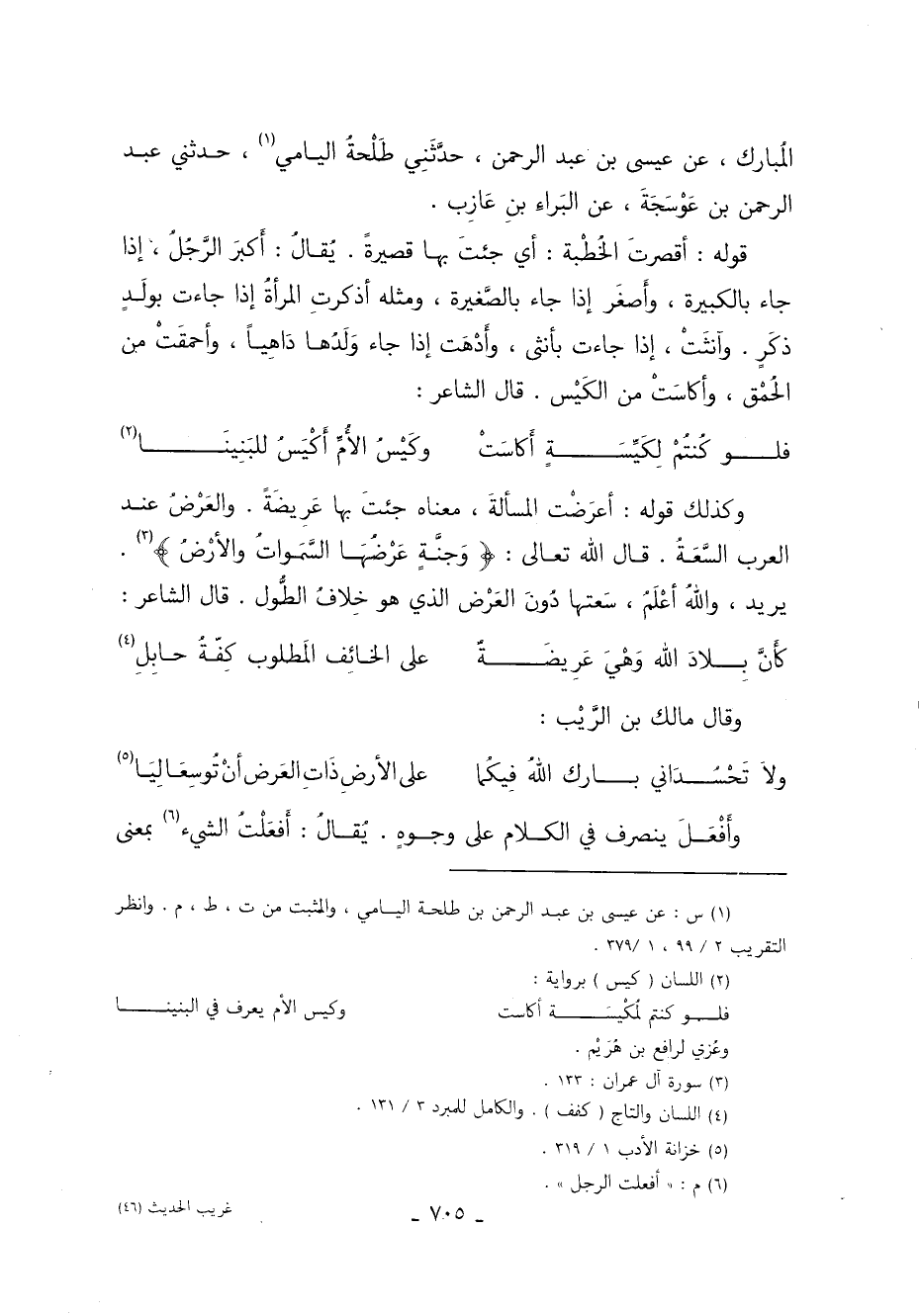 الْمُبَارَكِ عَنْ عِيسَى بْنِ عَبْدِ الرَّحْمَنِ حَدَّثَنِي طَلْحَةُ الْيَامِيُّ 1 حَدَّثَنِي عَبْدِ الرَّحْمَنِ بْنِ عَوْسَجَةَ عَنِ الْبَرَاءِ بْنِ عَازِبٍ.
