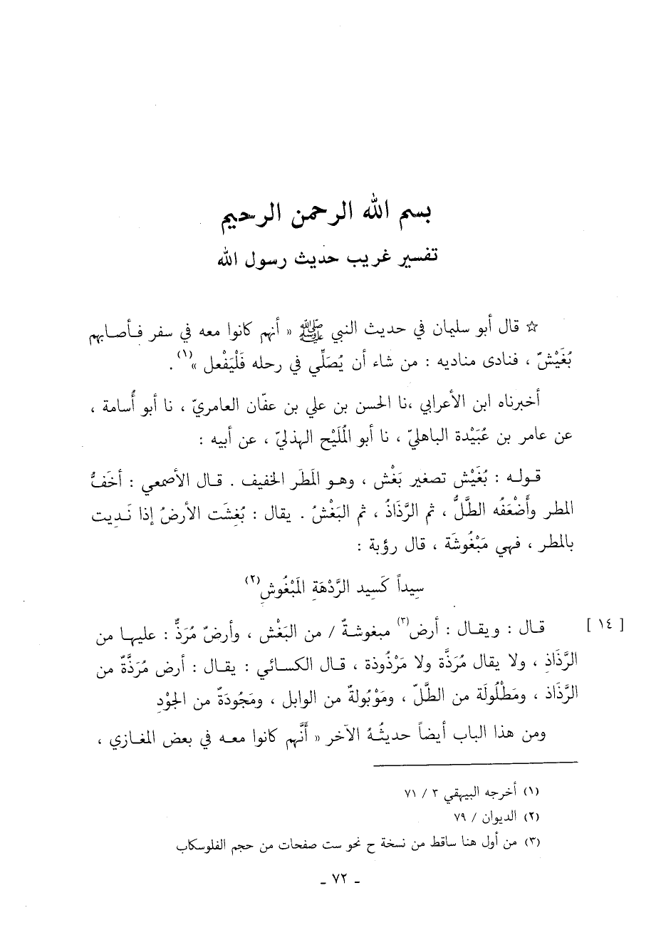 تفسير غريب حديث رَسُول الله: