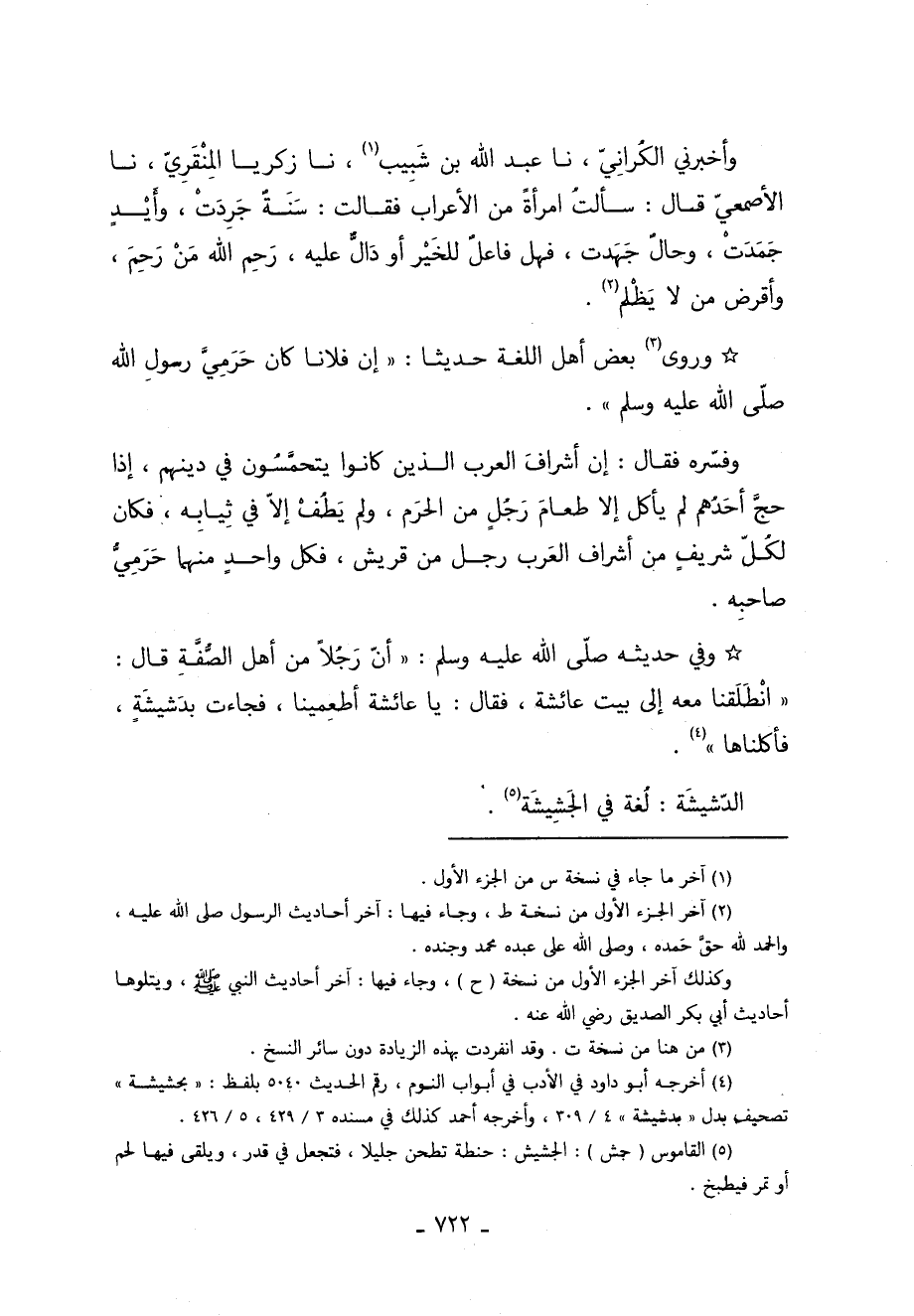 1 أخرجه أبو داود في الأدب في أبواب النوم رقم الحديث 5040 بلفظ: "بحشيشة" تصحيف بدل "بدشيشة" 4/ 309 واخرجه أحمد كذلك في مسنده 3/ 429, 5/ 426.