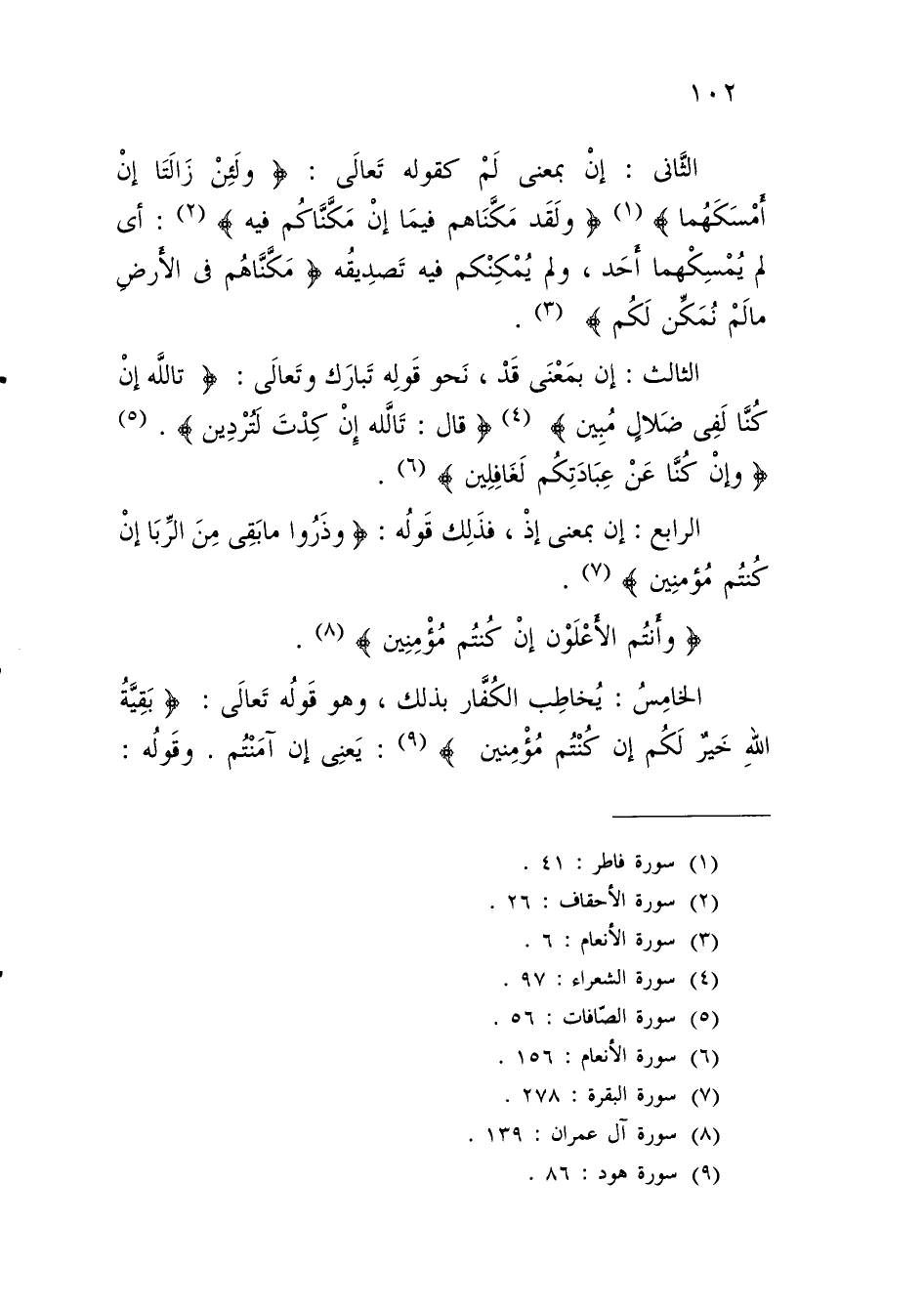 الرابع: إن بمعنى إذْ، فذَلِك قَولُه: {وَذَرُوا مَا بَقِيَ مِنَ الرِّبَا إِنْ كُنْتُمْ مُؤْمِنِينَ} (¬7).