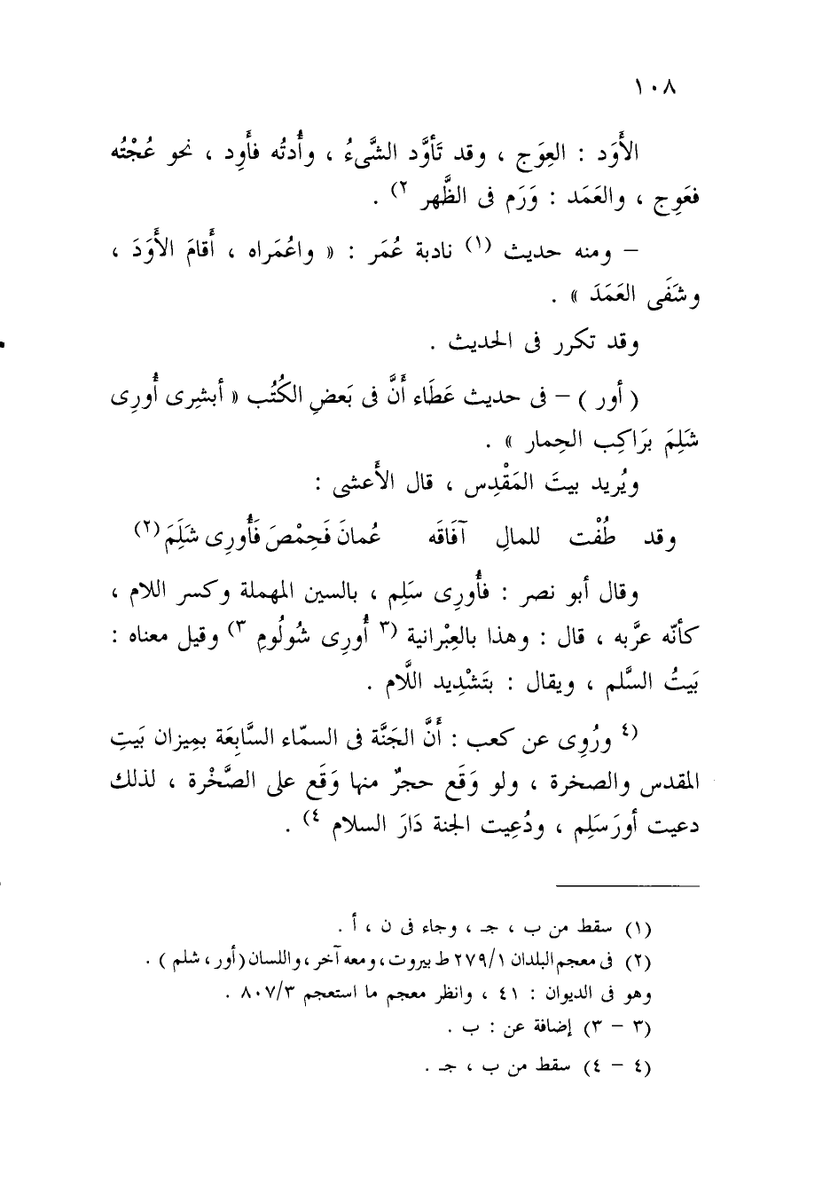 (أور) - في حديث عَطاء أَنَّ في بَعضِ الكُتُب "أبشِرى أُورِى شَلِمَ براكِب الحِمار".