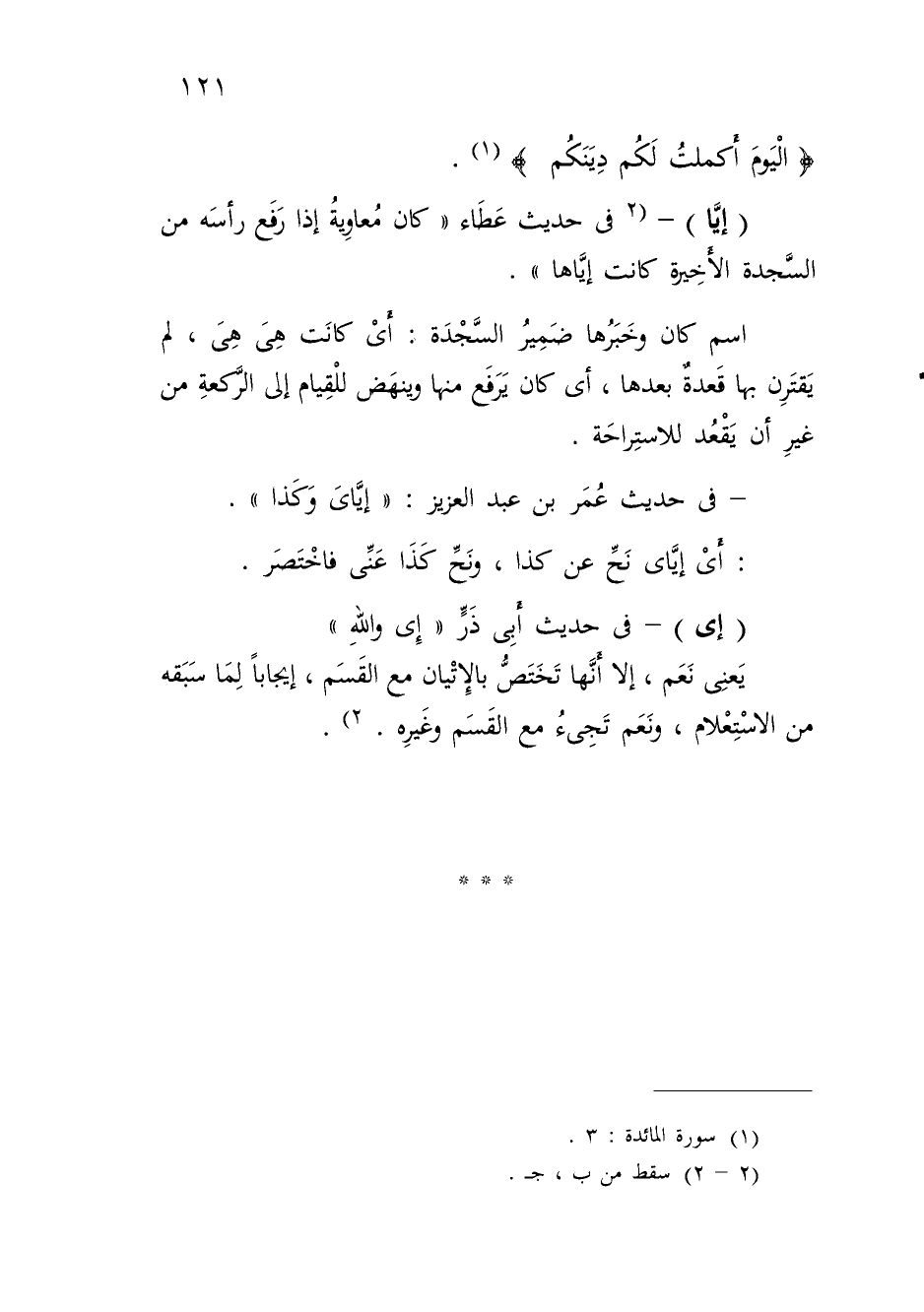 (إيّا) - (2 في حديث عَطاء "كان مُعاوِيةُ إذا رَفَع رأسَه من السَّجدة الأخِيرة كانت إيَّاها".