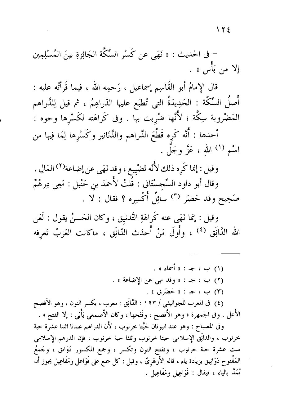 أحدها: أنَّه كَرِه قَطْعَ الدَّراهم والدَّنَانير وكَسْرِها لِما فِيها من اسْم (¬1) اللهِ، عَزَّ وجَلَّ.