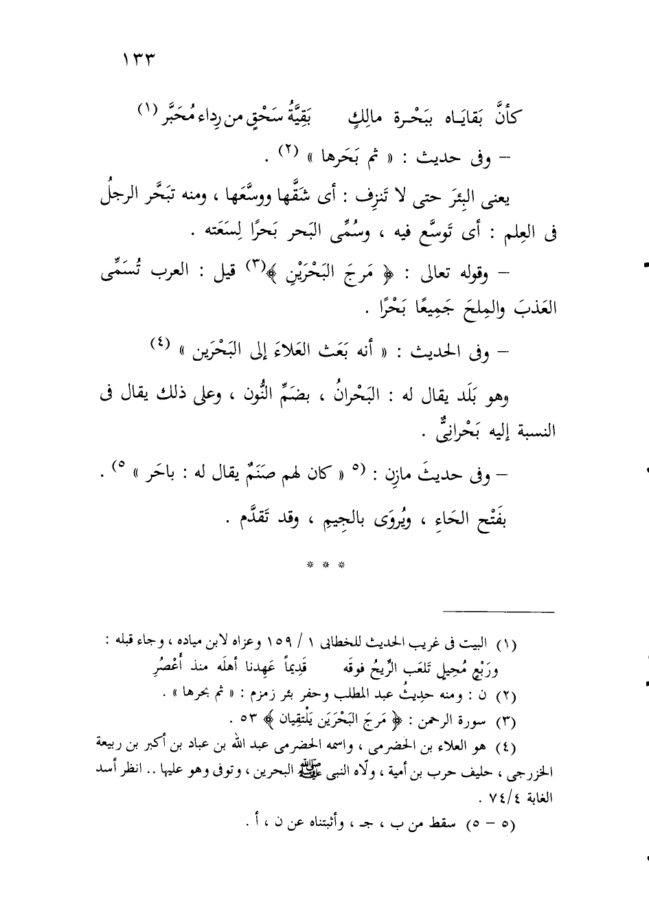 (¬2) ن: ومنه حدِيثُ عبد المطلب وحفر بئر زمزم: "ثمَّ بحرها".