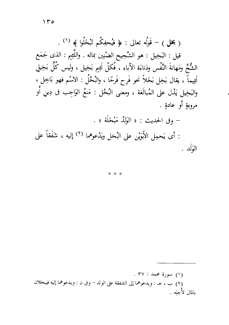(بخل) - قَولُه تعالى: {فَيُحْفِكُمْ تَبْخَلُوا} (¬1).