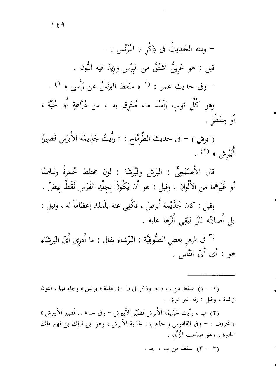 (1 - 1) سقط من ب، جـ وذكر في ن: في مادة "برنس" وجاء فيها، النون زائدة، وقيل: إنه غير عربى.