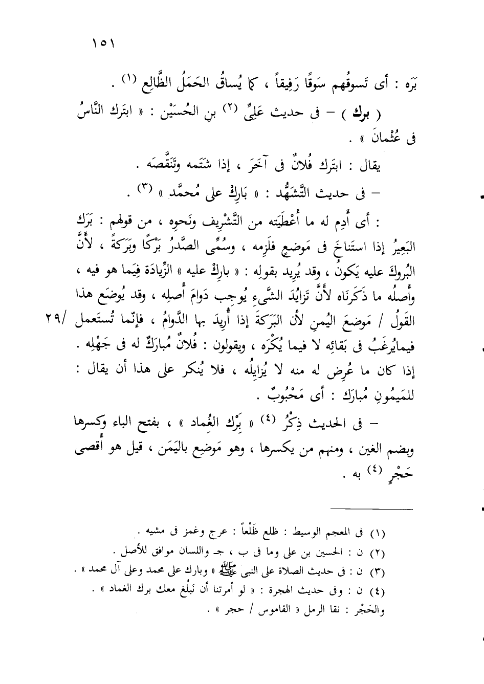 (برك) - في حديث عَلِىِّ (¬2) بنِ الحُسَيْن: "ابتَرك النَّاسُ في عُثْمانَ".