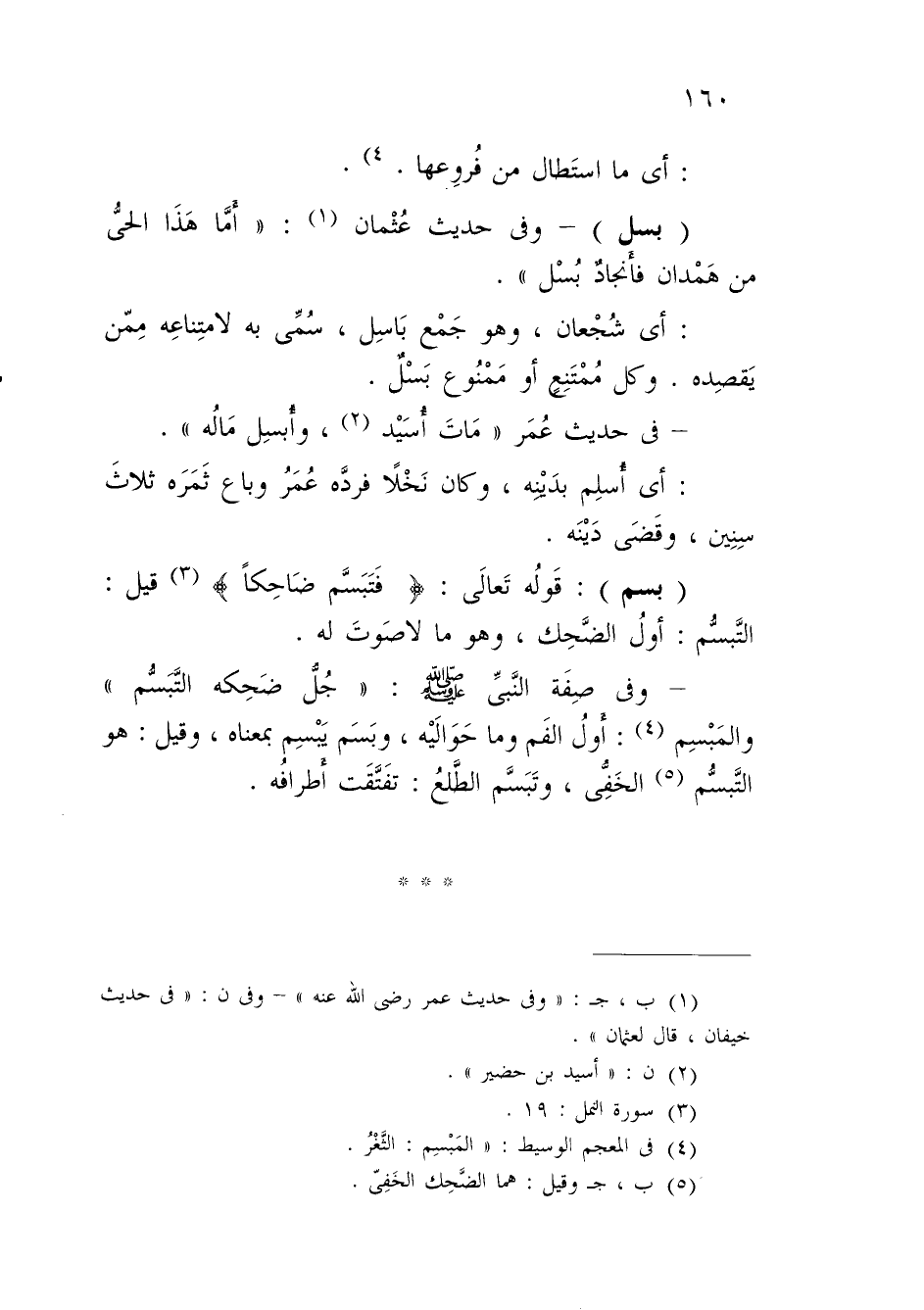 (بسم): قَولُه تَعالَى: {فَتَبَسَّم ضَاحِكاً} (¬3) قيل: التَّبسُّم: أولُ الضَّحِك، وهو ما لا صَوتَ له