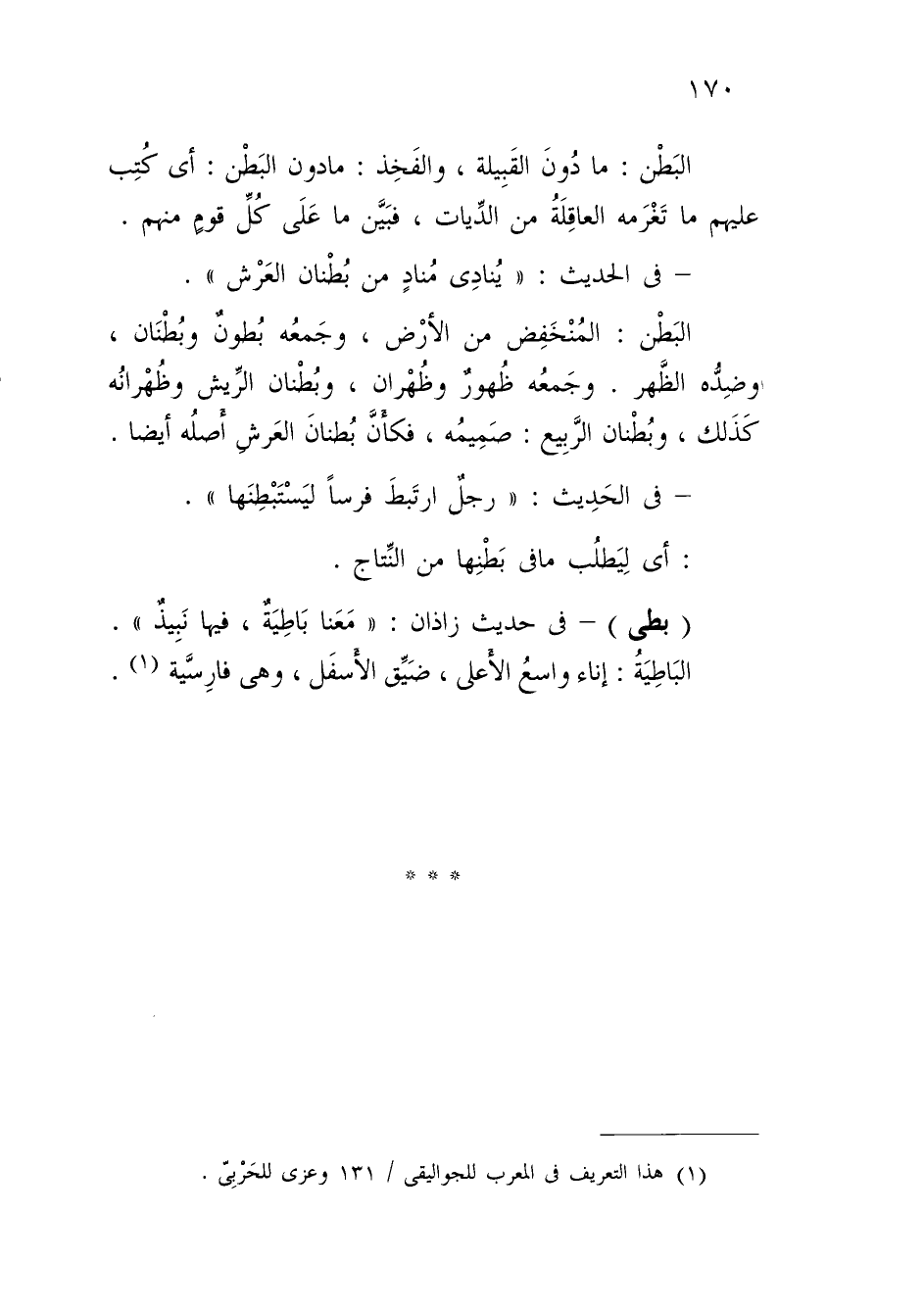(¬1) هذا التعريف في المعرب للجواليقى/ 131 وعزى للحَرْبِىّ.