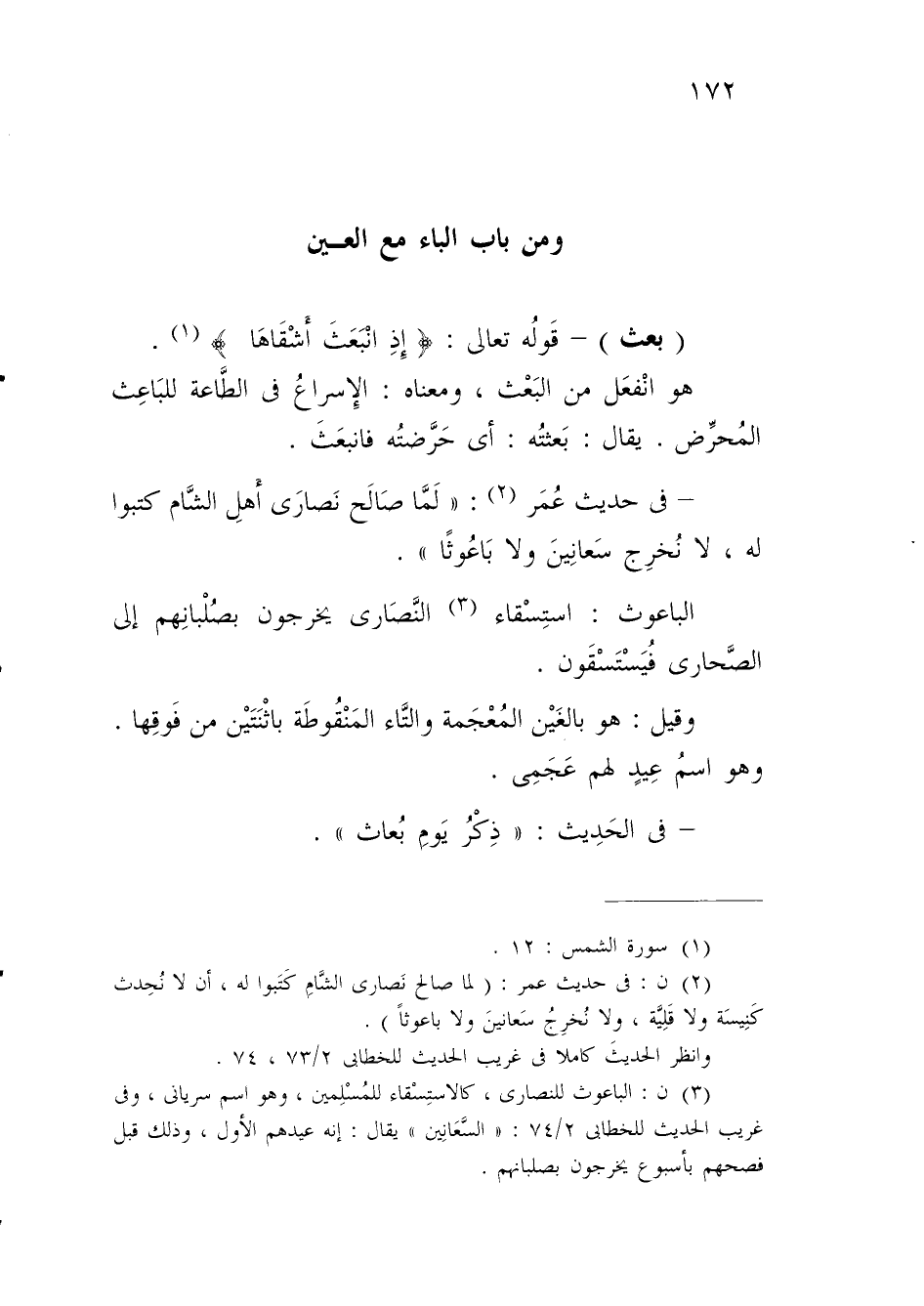 (¬3) ن: الباعوث للنصارى، كالاستِسْقاء للمُسْلِمين، وهو اسم سريان، وفي غريب الحديث للخطابى 2/ 74: "السَّعَانِين" يقال: إنه عيدهم الأول، وذلك قبل فصحهم بأسبوع يخرجون بصلبانهم.