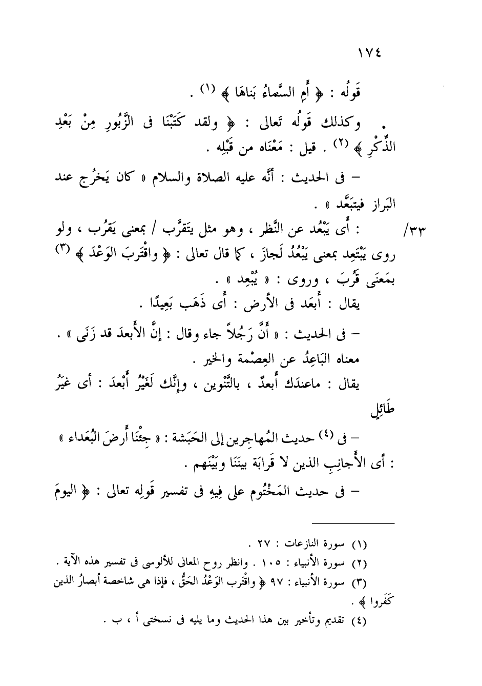 - في (¬4) حديث المُهاجِرين إلى الحَبَشة: "جِئْنَا أَرضَ البُعَداء": أي الأَجانِبِ الذين لا قَرابَة بينَنَا وبَيْنَهم.
