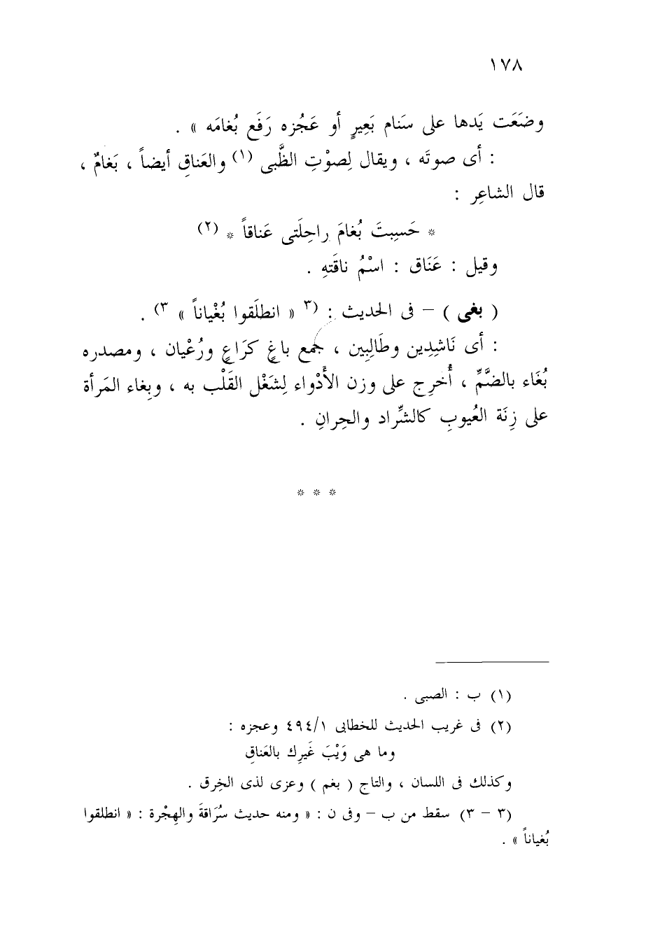 (3 - 3) سقط من ب - وفي ن: "ومنه حديث سُرَاقةَ والهِجْرة: "انطلقوا بُغياناً".