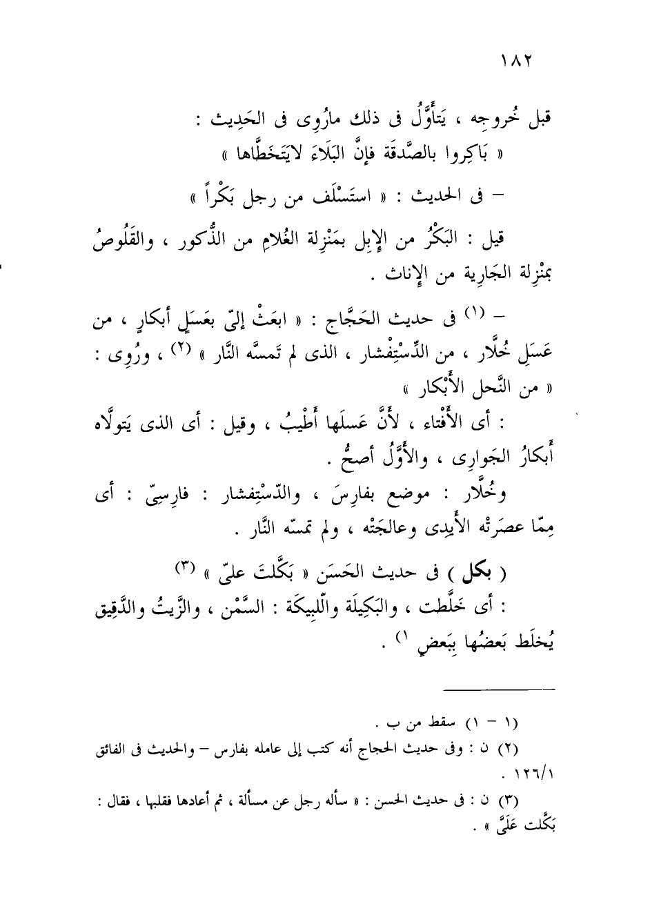 (¬2) ن: وفي حديث الحجاج أنه كتب إلى عامله بفارس - والحديث في الفائق 1/ 126.