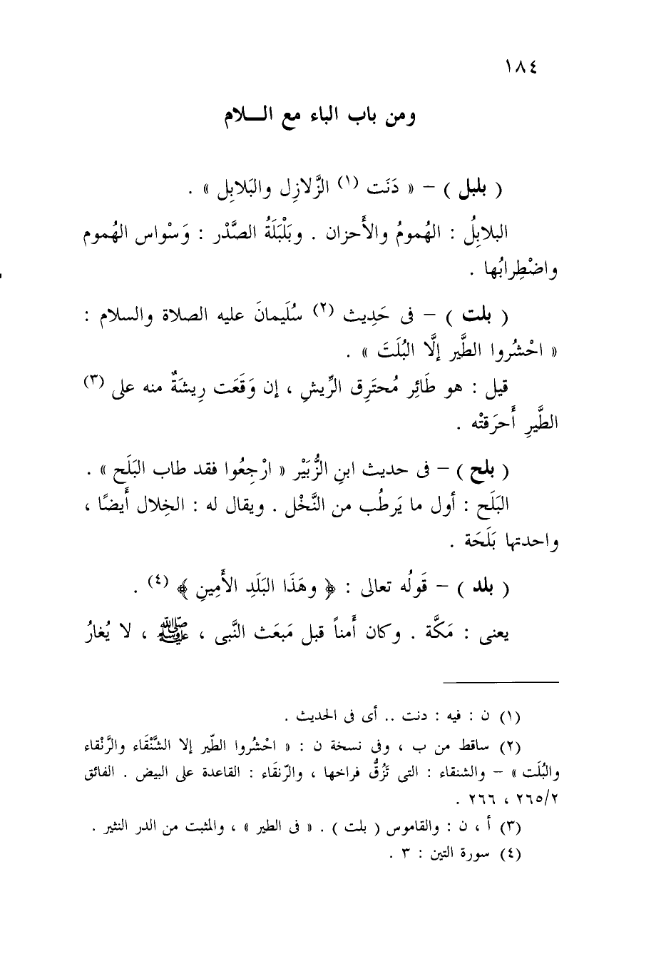 (¬3) أ، ن: والقاموس (بلت). "في الطير"، والمثبت من الدر النثير.