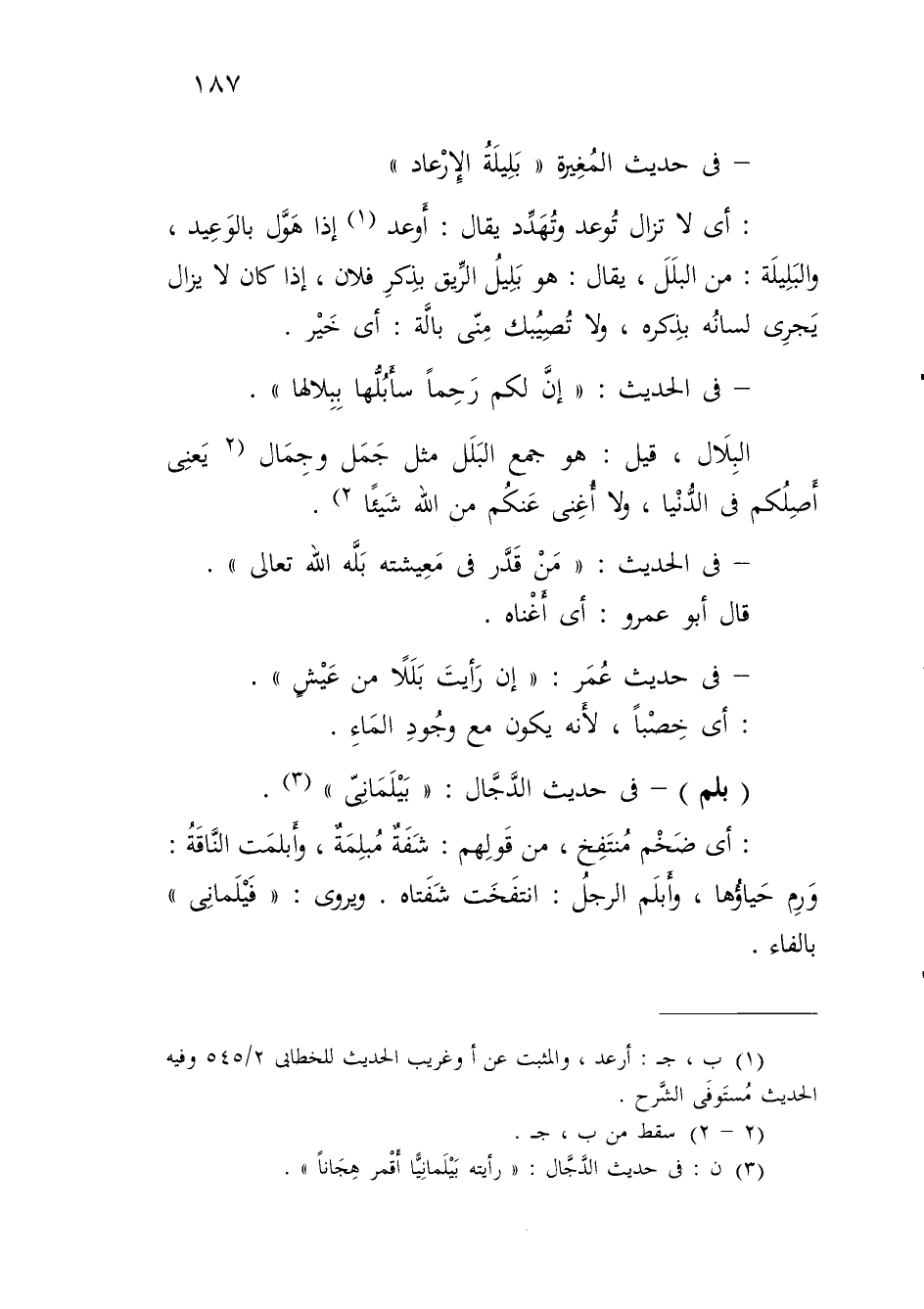(بلم) - في حديث الدَّجَّال: "بَيْلَمَانِىّ" (¬3).
