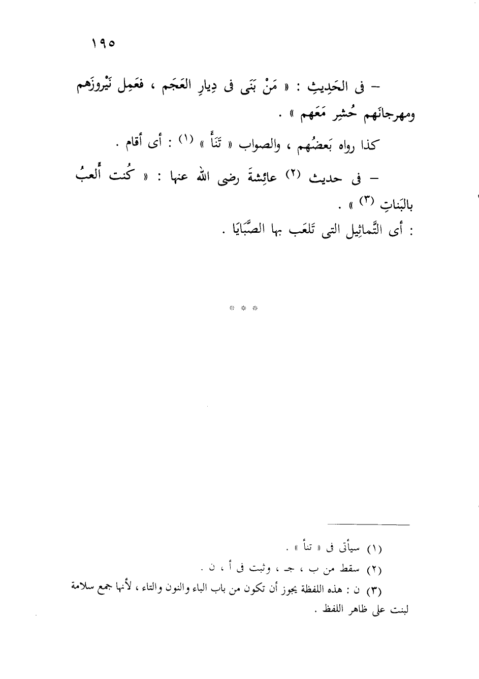 (¬3) ن: هذه اللفظة يجوز أن تكون من باب الباء والنون والتاء، لأنها جمع سلامة لبنت على ظاهر اللفظ.