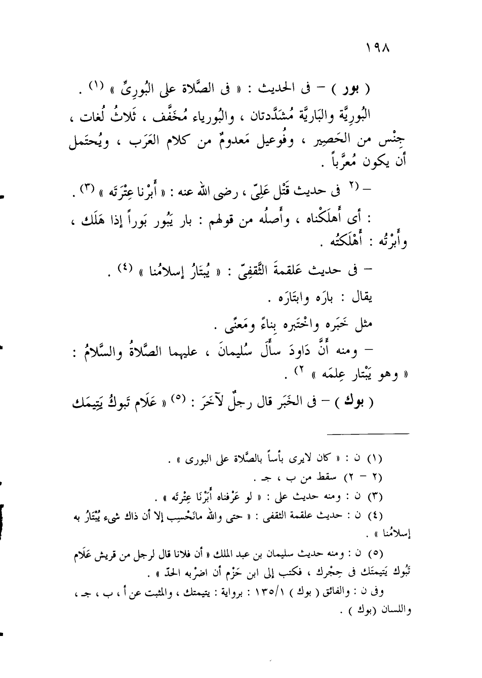 (¬3) ن: ومنه حديث على: "لو عَرْفناه أَبَرْنَا عِتْرتَه".