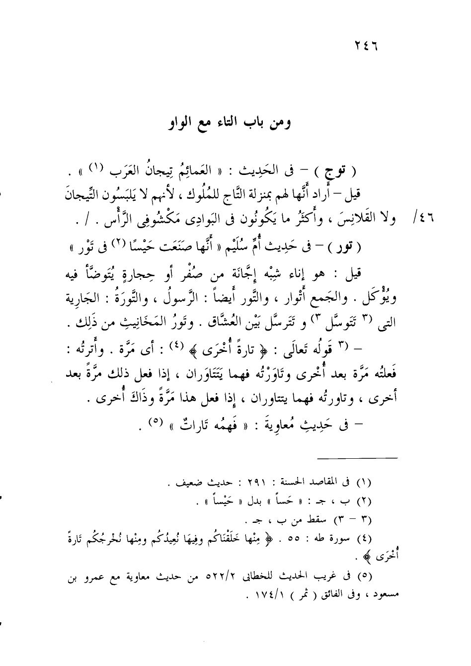 ومن باب التاء مع الواو