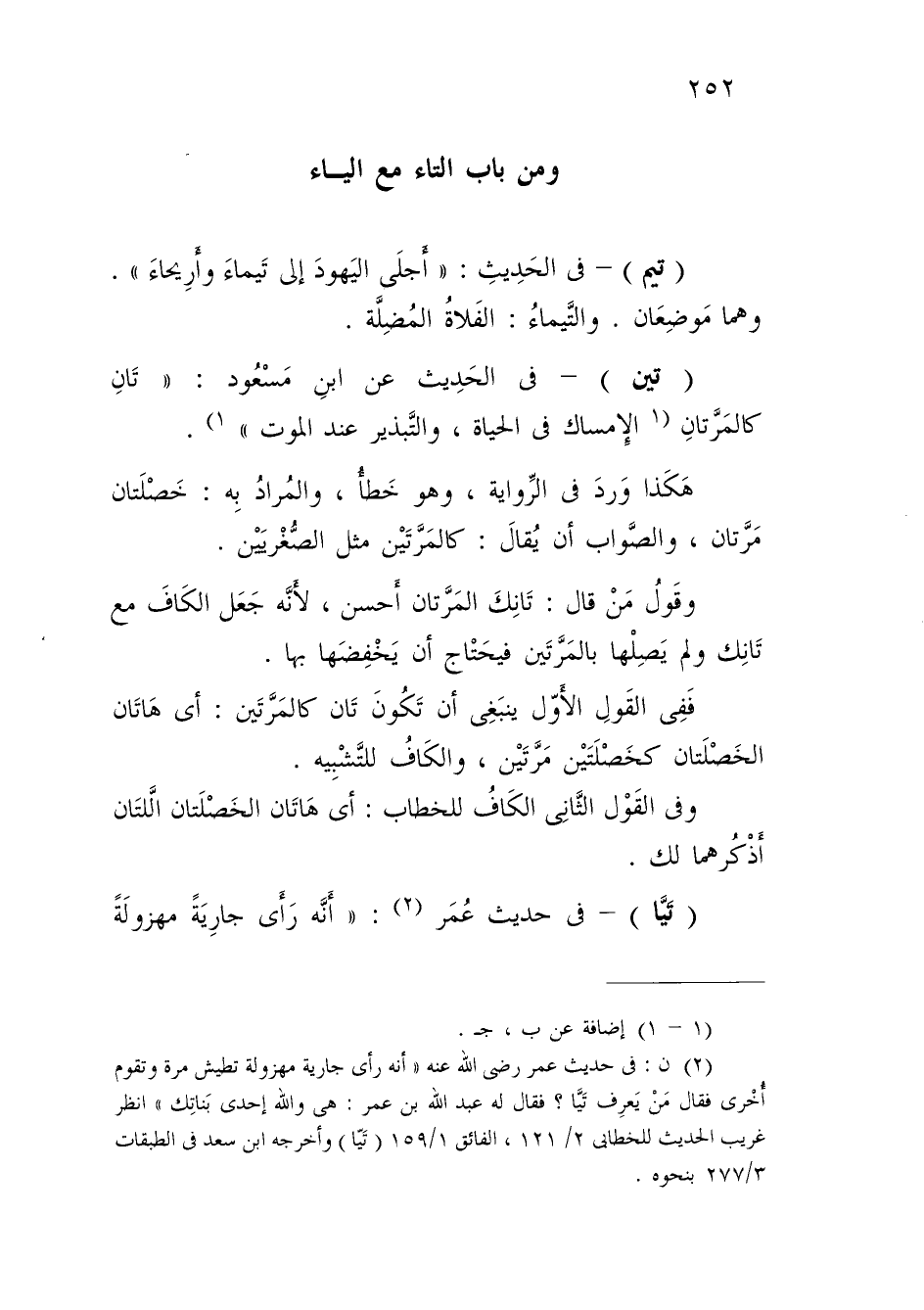 (¬2) ن: في حديث عمر رضي الله عنه "أنَّه رأى جارية مهزولة تطيش مرة وتقوم أُخْرى فقال مَنْ يَعرِف تَيَّا؟ فقال له عبد الله بن عمر: هي والله إحدى بَناتِك" انظر غريب الحديث للخطابي 2/ 121، الفائق 1/ 159 (تَيّا) وأخرجه ابن سعد في الطبقات 3/ 277 بنحوه.