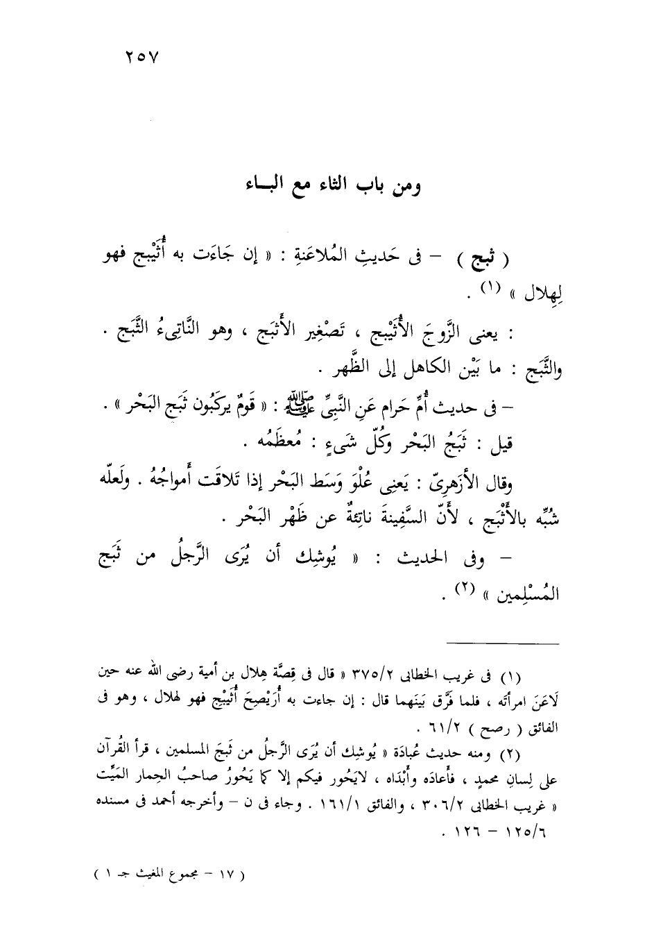 (¬1) في غريب الخطابي 2/ 375 "قال في قِصَّة هِلال بن أمية رضي الله عنه حين لَاعَنَ امرأتَه، فلما فَرَّق بَينَهما قال: إن جاءت به أُريْصِحَ أُثَيْبِجِ فهو لهلال، وهو في الفائق (رصح) 2/ 61.