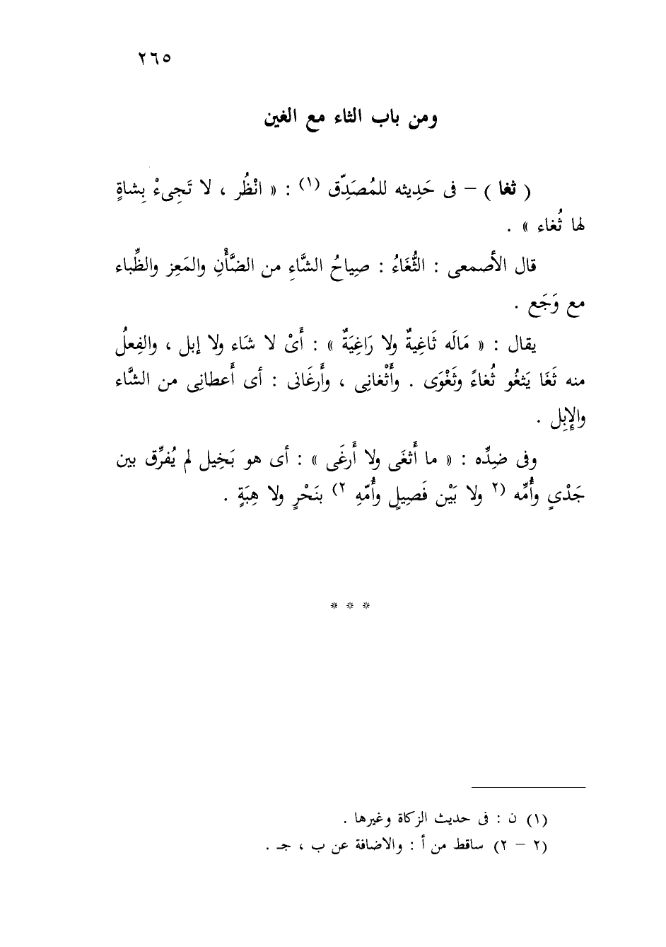 ومن باب الثاء مع الغين