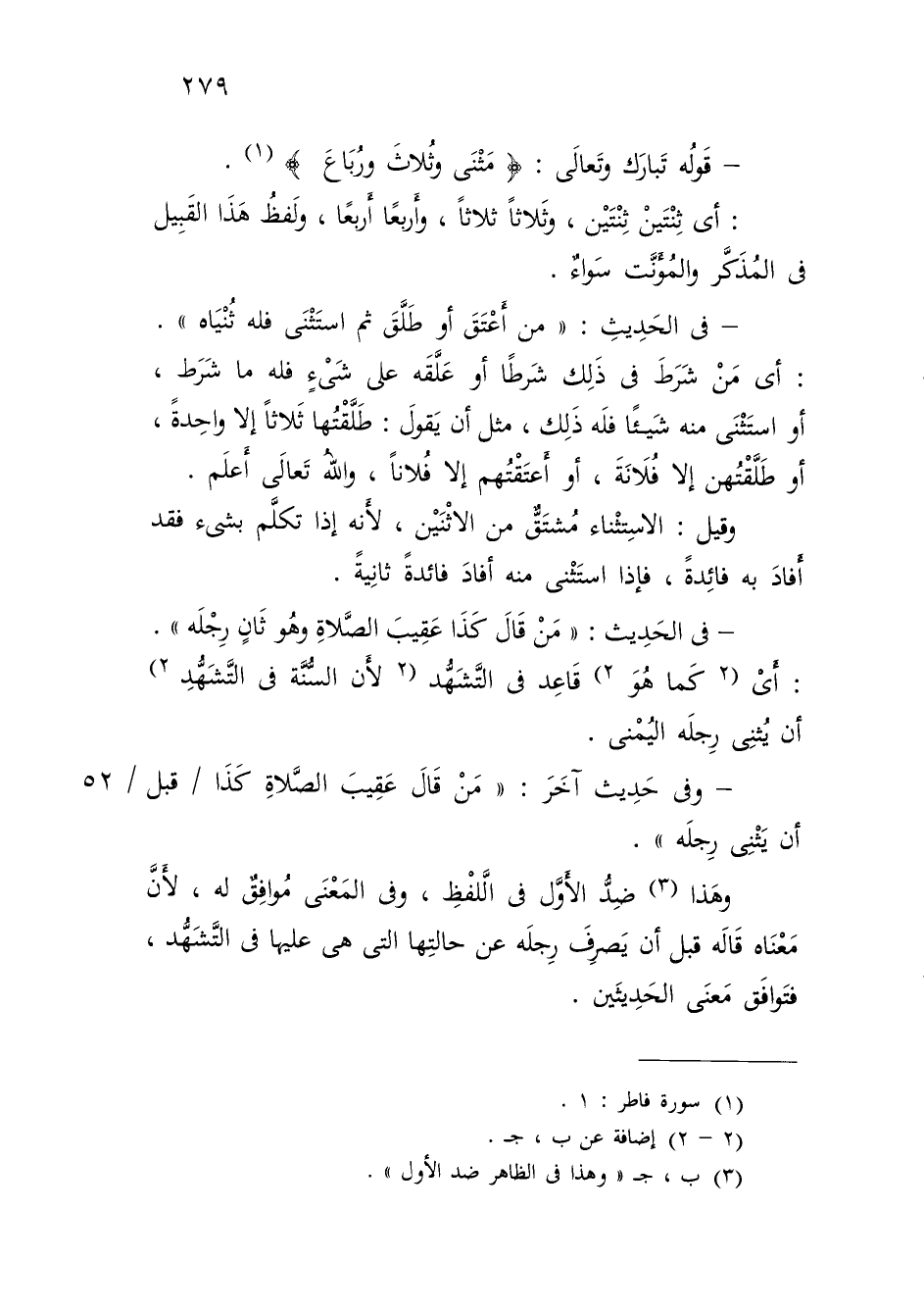 وهَذا (¬3) ضِدُّ الأَوَّل في الَّلفْظِ، وفي المَعْنَى مُوافِقٌ له، لأَنَّ مَعْنَاه قَالَه قبل أن يَصرِفَ رِجلَه عن حالتِها التي هي عليها في التَّشَهُّد، فتَوافَق مَعنَى الحَدِيثَين.