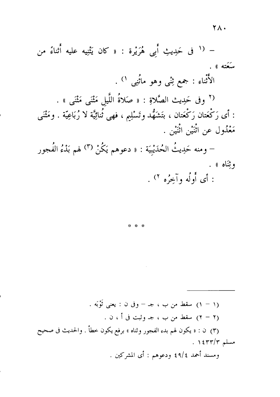 - (1 في حَدِيثِ أَبِي هُرَيْرة: "كان يَثْنِيه عليه أَثناءً من سَعَته".