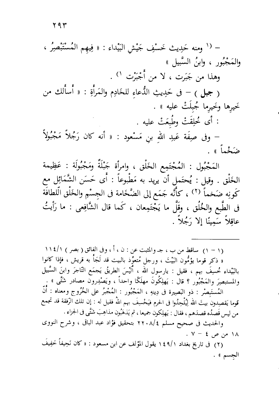 - (1 ومنه حدِيث خَسْفِ جَيْشِ البَيْداء: "فِيهِم المُسْتَبْصِرُ، والمَجْبُور، وابنُ السَّبيل"
