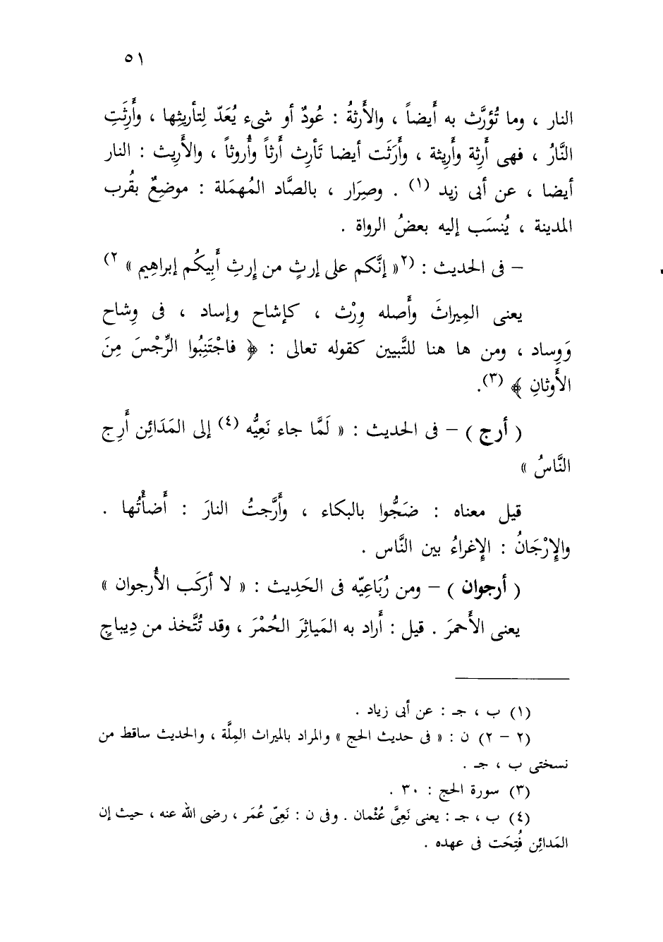 (أرج) - في الحديث: "لَمَّا جاء نَعِيُّه (¬4) إلى المَدَائِن أَرِج النَّاسُ"