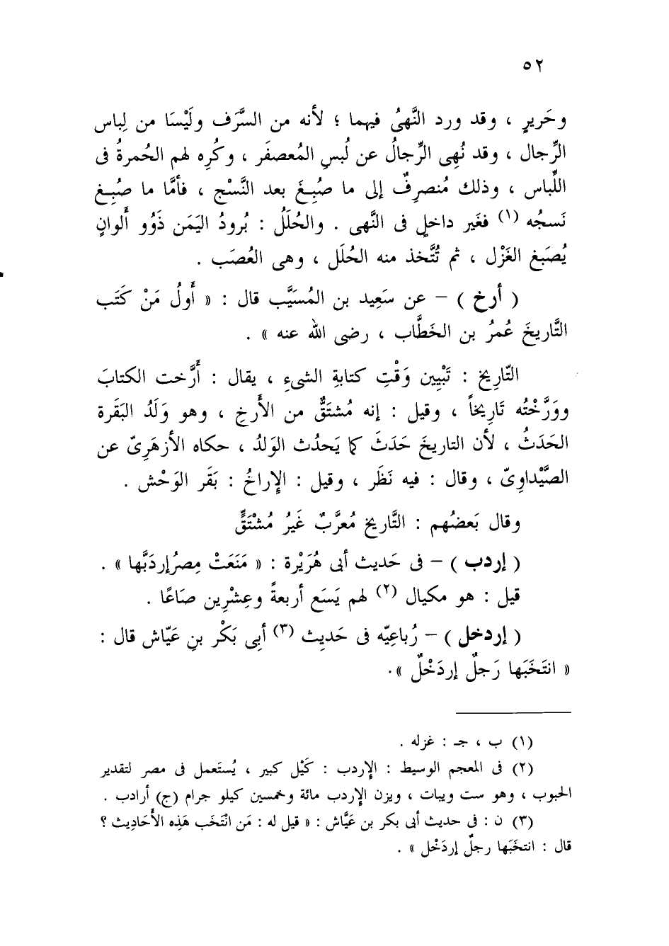 (أرخ) - عن سَعِيد بن المُسَيَّب قال: "أولُ مَنْ كَتَب التَّاريخَ عُمرُ بن الخَطَّاب، رضي الله عنه".
