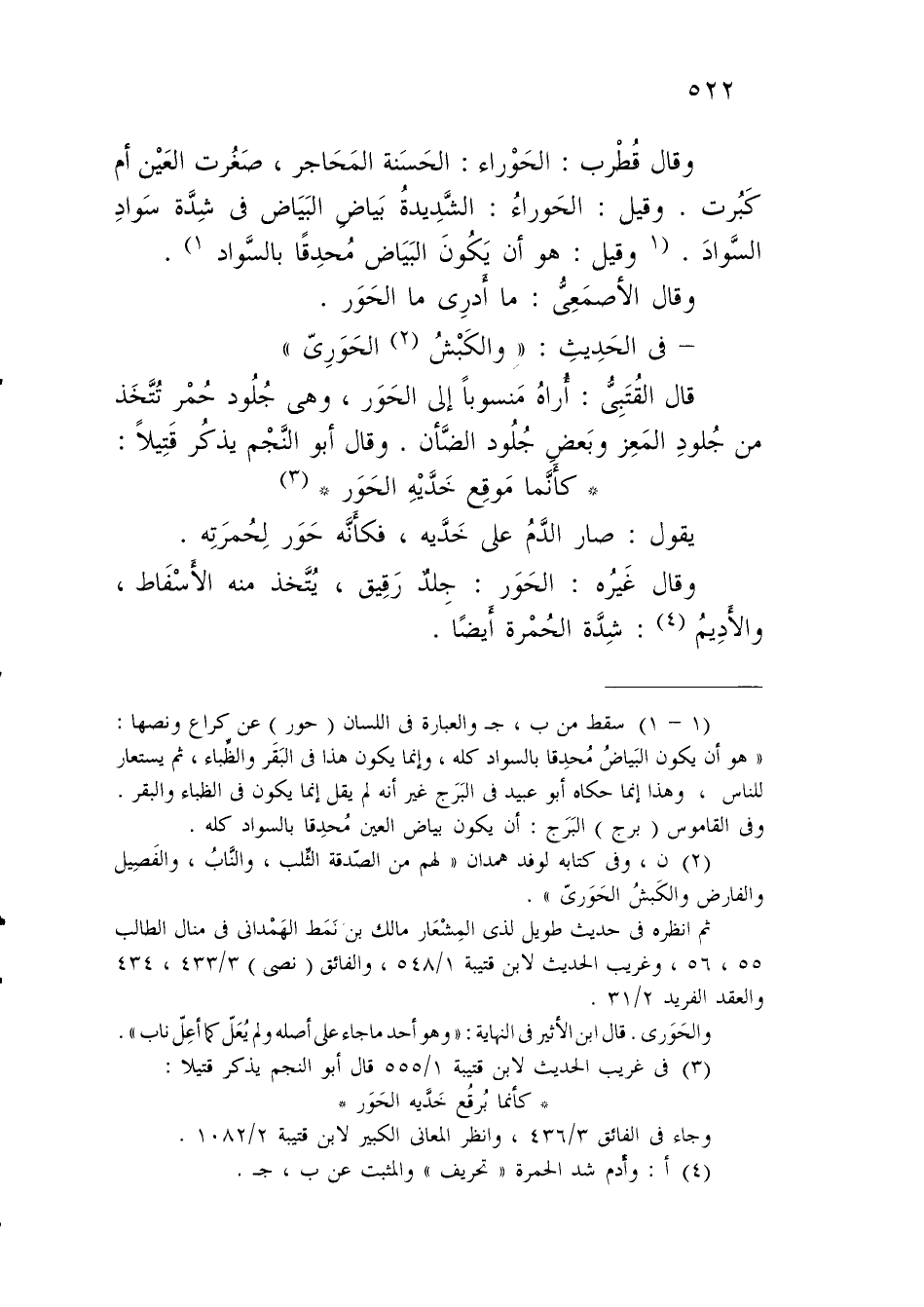 (1 - 1) سقط من ب، جـ والعبارة في اللسان (حور) عن كراع ونصها: "هو أن يكون البَياضُ مُحدِقا بالسواد كله، وإنما يكون هذا في البَقَر والظَّباء، ثم يستعار للناس، وهذا إنما حكاه أبو عبيد في البَرَج غير أنه لم يقل إنما يكون في الظباء والبقر. وفي القاموس (برج) البَرَج: أن يكون بياض العين مُحدِقا بالسواد كله.
