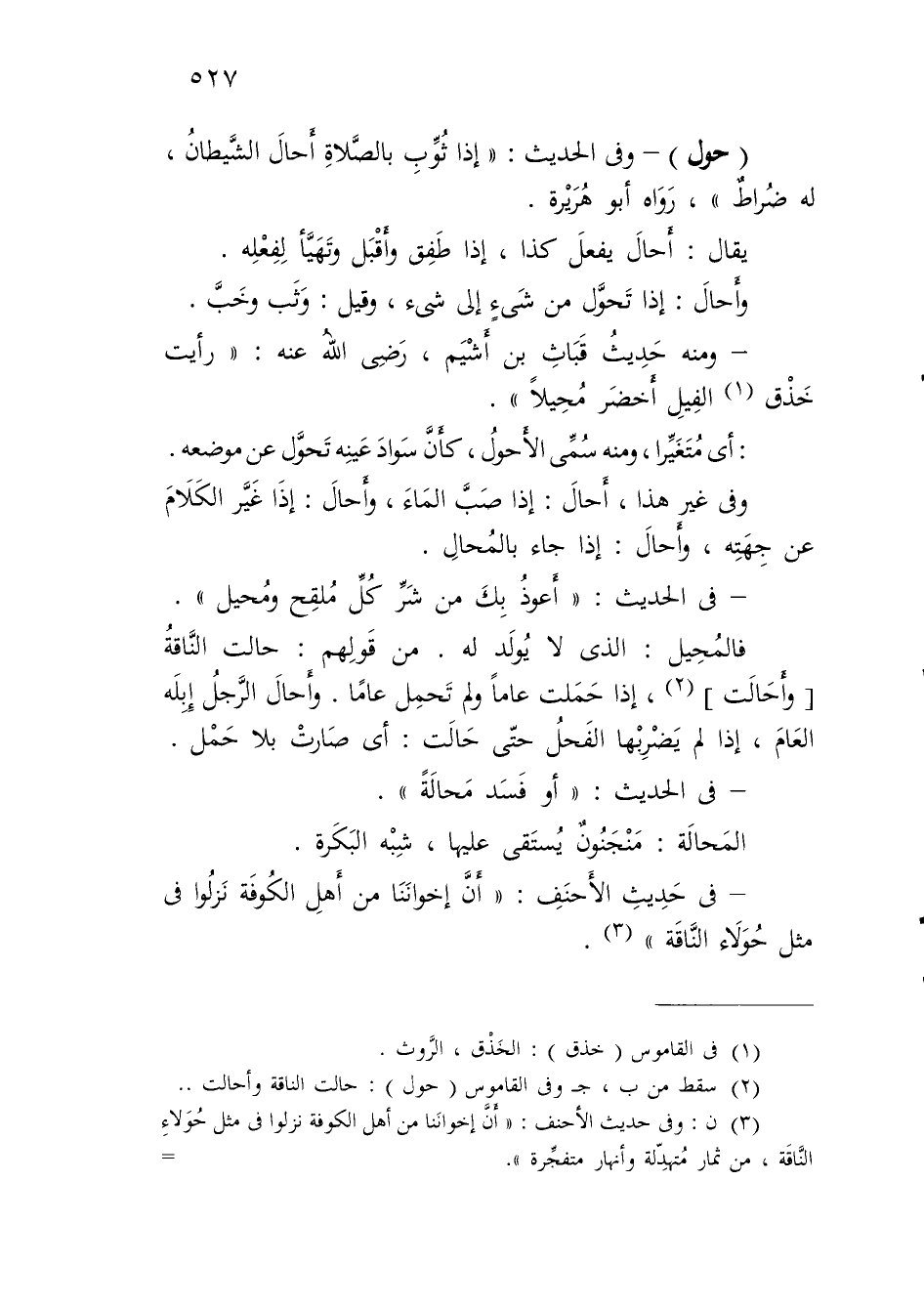 (حول) - وفي الحديث: "إذا ثُوِّبِ بالصَّلاةِ أَحالَ الشَّيطانُ، له ضُراطٌ"، رَوَاه أبو هُرَيْرة.