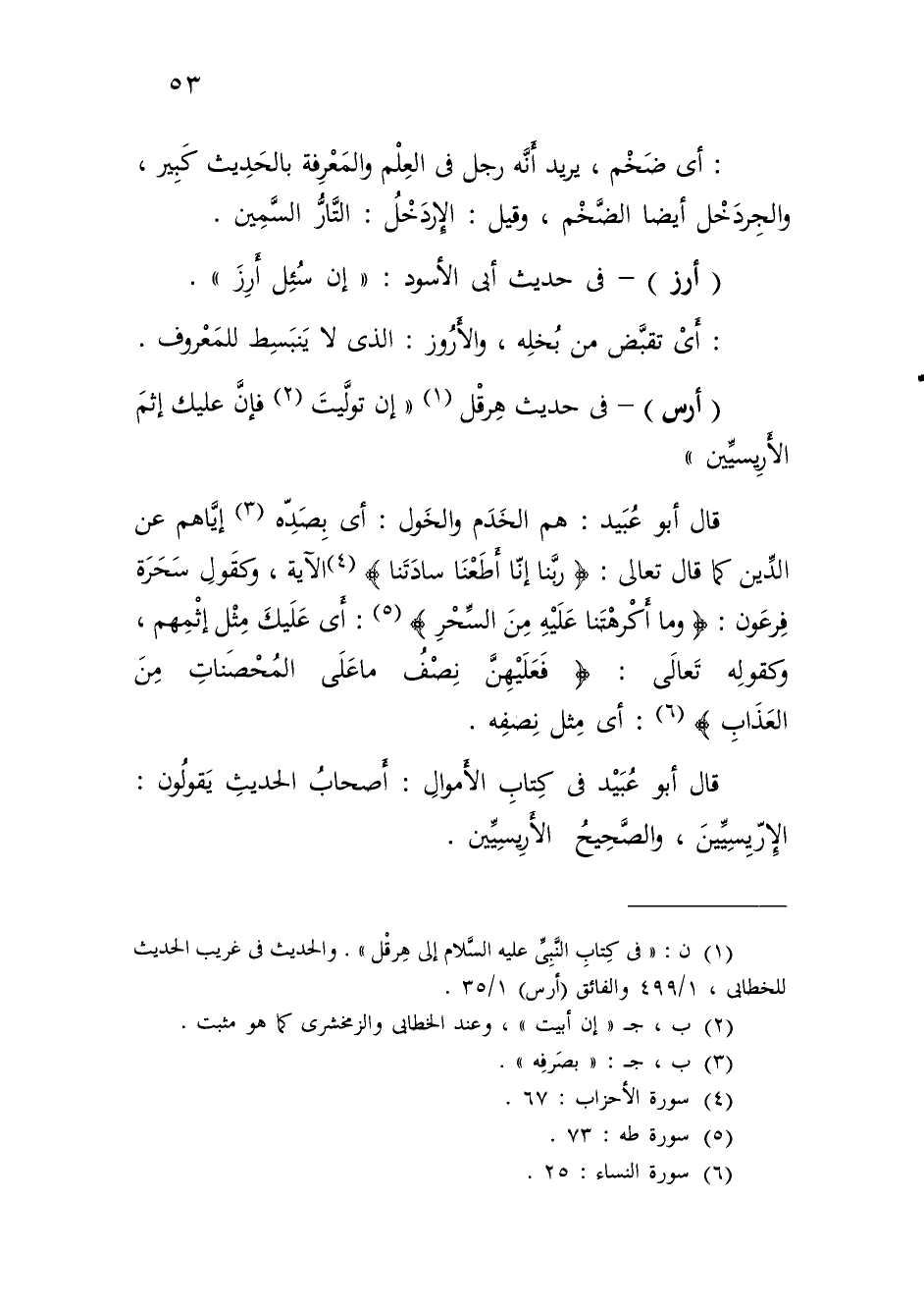 (¬1) ن: "في كِتابِ النَّبِىِّ عليه السَّلام إلى هِرقْل". والحديث في غريب الحديث للخطابى، 1/ 499 والفائق (أرس) 1/ 35.