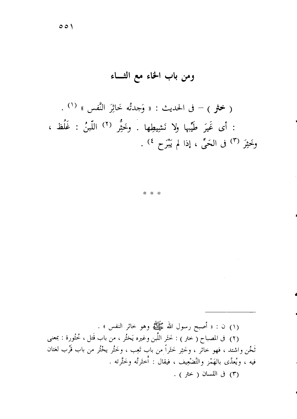 : أي غَيرَ طَيَّبها ولا نَشِيطِها. وخَثُر (¬2) اللّبنُ: غَلُظ، وخَثِرَ (¬3) في الحَىَّ، إذا لم يَبْرَح 4).