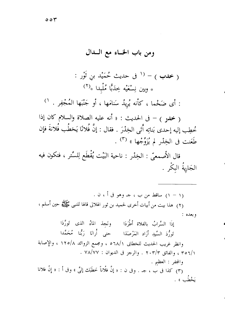 (خدب) - (1 في حديث حُمَيْد بنِ ثَوْر: