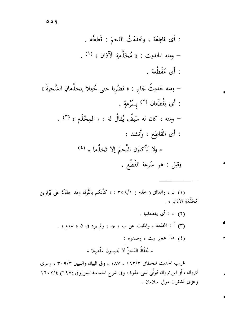ومنه، كان له سَيفٌ يُقالُ له: "المِخْذَم" (¬3).