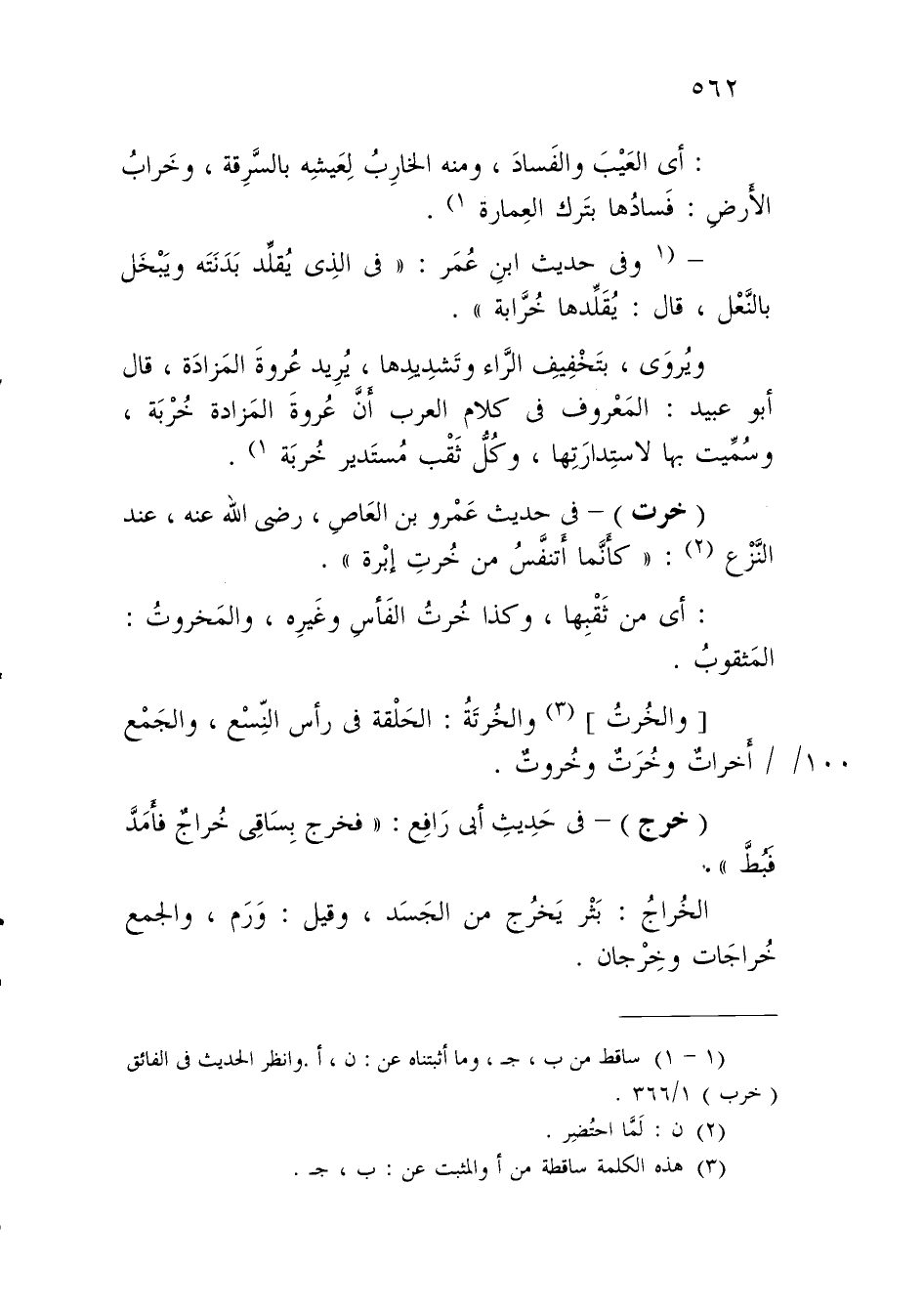 (1 - 1) ساقط من ب، جـ، وما أثبتناه عن: ن، أ. وانظر الحديث في الفائق (خرب) 1/ 366.