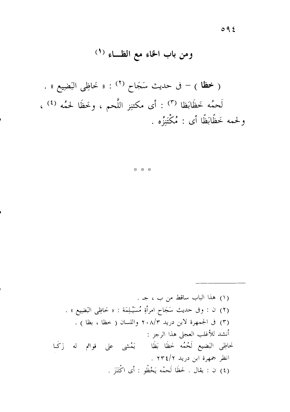 لَحمُه خَظَابَظا (¬3): أي مكتنِز اللَّحم، وخَظَا لحمُه (¬4) , ولحمه خَظًابَظًا أي: مُكْتَنِزُه.
