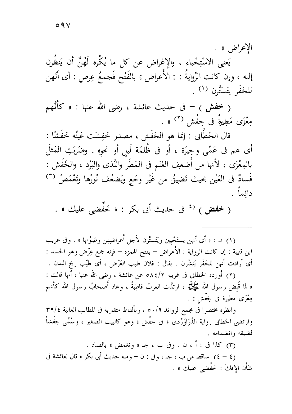 (4 - 4) ساقط من ب، جـ، وفي: ن - ومنه حديث أبي بكر "قال لعائشة في شَأْن الِإفك: خَفِّضِي عليك".