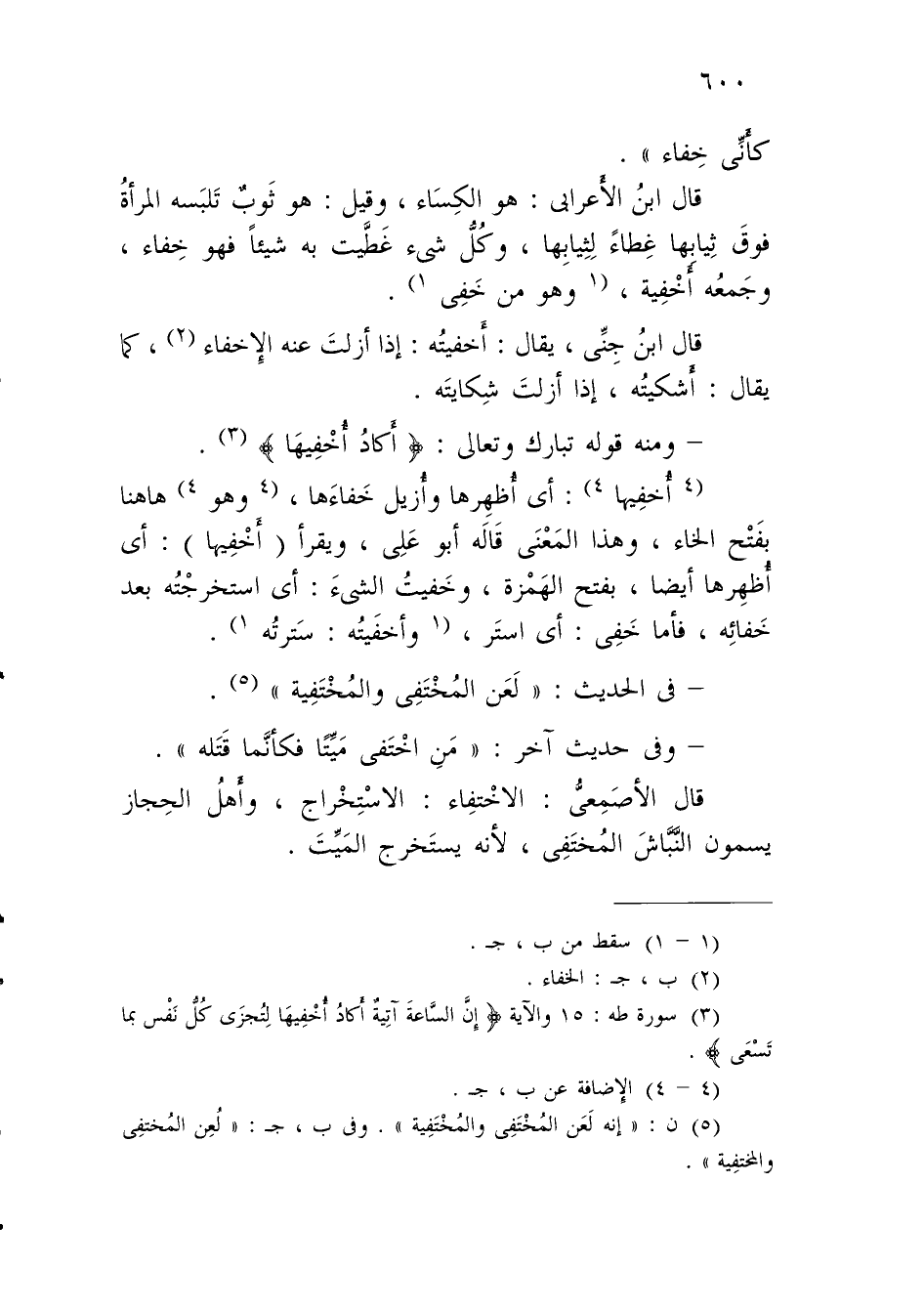 قال الأصَمِعيُّ: الاخْتفِاء: الاسْتِخْراج، وأَهلُ الحِجاز يسمون النَّبَّاشَ المُختَفِي، لأنه يستَخرج المَيِّتَ.