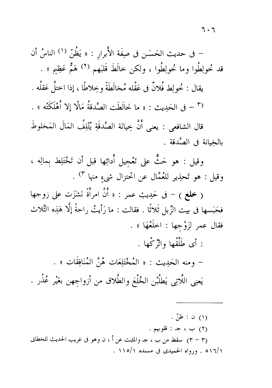 - ومنه الحَدِيث: "المُخْتَلِعَات هُنَّ المنَافِقَات".